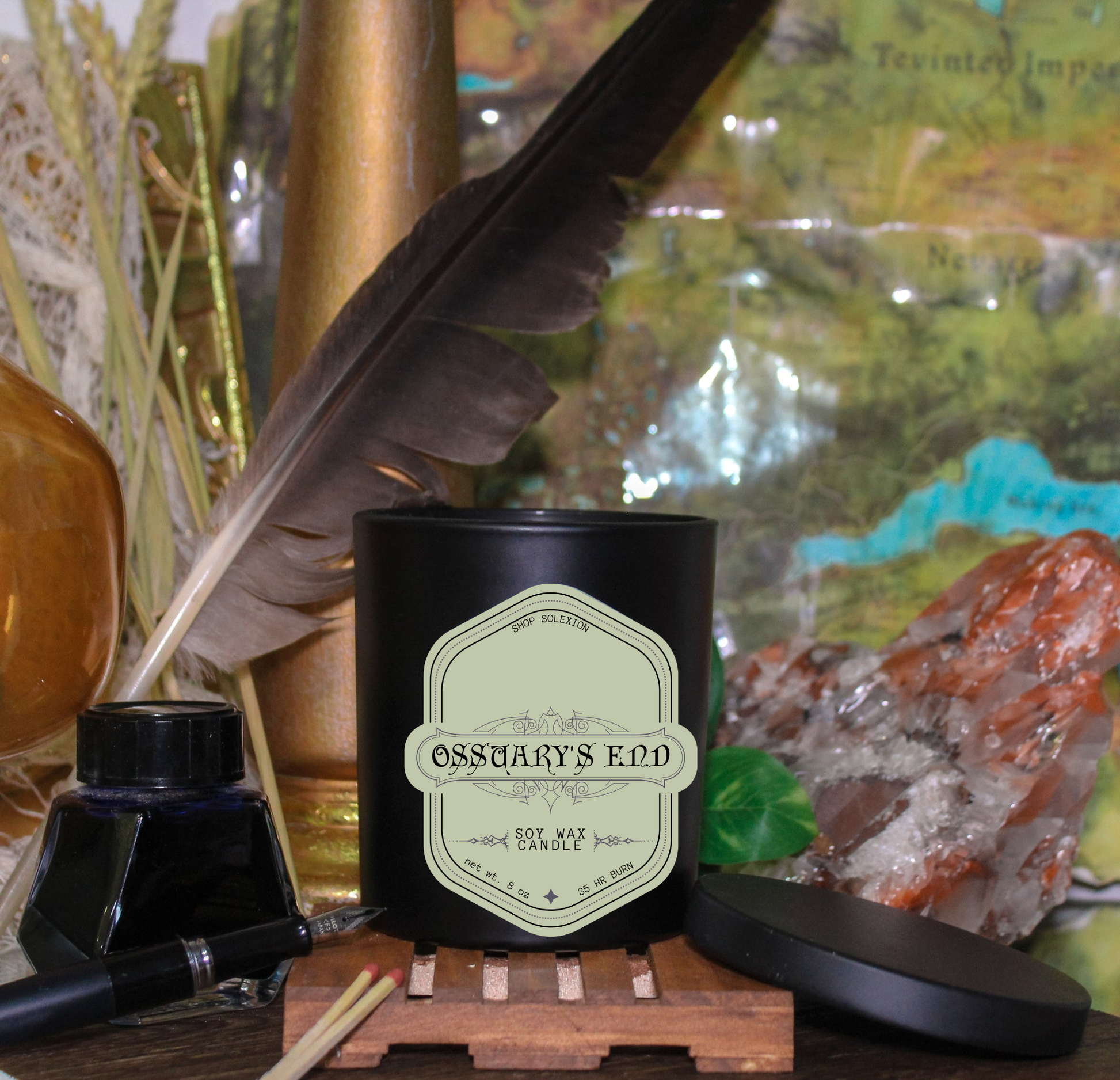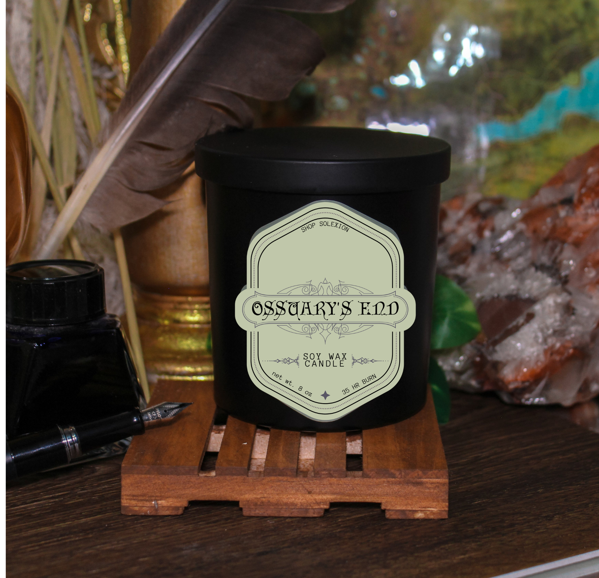 Net Wt. 8oz | 10oz Matte Black Glass Vessel w/ black metal lid
