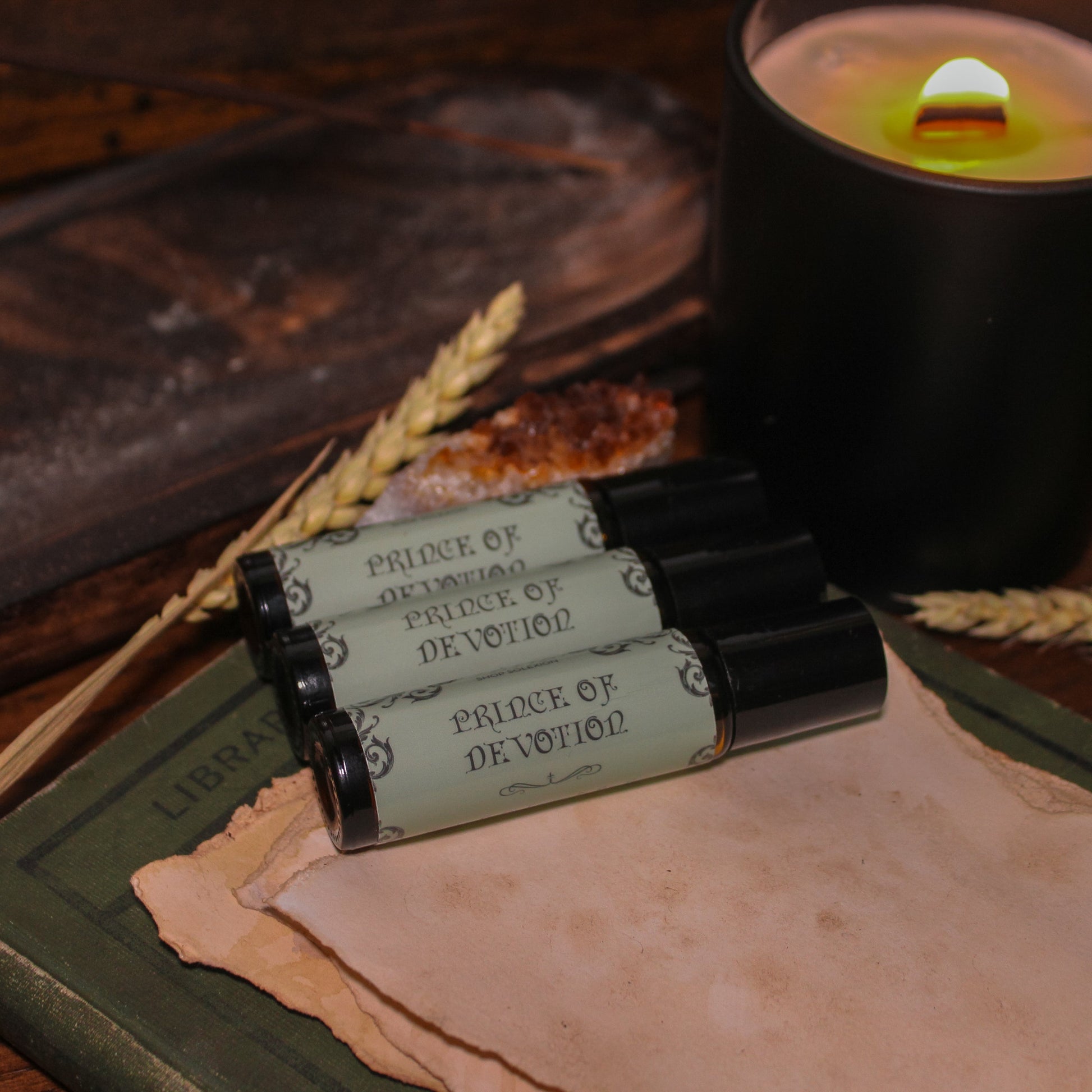 Warm, ambered and masculine, the fragrance is inspired by Sebastian Vael and his devotion to Starkhaven. Herbal notes reminiscent of chantry herbs float on top, sage, mugwort and basil the most prominent. Middle notes of tabaco leaf, leather and suede settle the fragrance into it's manly warmth. Rounded out by vanilla ambrette and cedarwood, this scent is anchored in leathery warmth with herbal tones that will put you within the hallowed halls of the old chantry buildings.