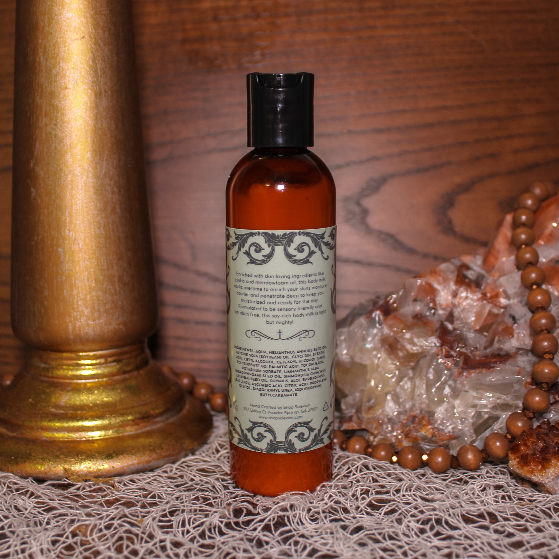 Enriched with skin loving ingredients like jojoba and meadowfoam oil, this body milk works overtime to enrich your skins moisture barrier and penetrate deep to keep you moisturized and ready for the day. Formulated to be sensory friendly and paraben free, this soy-rich body milk is light but mighty!